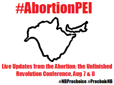 Several members of Reproductive Justice New Brunswick were present for the Fredericton-area Liberal campaign launch on Saturday, August 3rd. With an ‘Abortion Access Now’ banner and ‘No vague Promises’ and ‘Show us your repeal Timeline’ posters, RJNB hoped to reinforce the importance of the Liberals clarifying their stance on improving abortion access in NB, and how they plan to “identify all barriers to a woman’s right to choose and eliminate them“. Although not indicated on the invitation or ticket, RJNB members were told only official Liberal party signs were allowed in the building. Most members remained outside, and were told that nothing in regards to reproductive heath was mentioned.